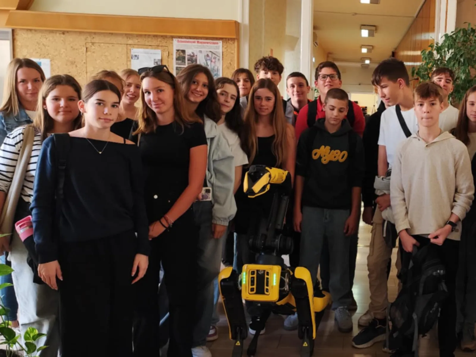 A főként diákokból álló csoport nem csak az Innovációs és Demonstrációs Tér kutatói demonstrációival és robotjaival ismerkedett meg, de találkoztak a HUN-REN SZTAKI kutatási platformként használt robotkutyájával is.